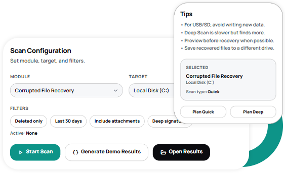 Notchox Corrupted File Recovery Software is a simple and comprehensive tool, easy to run and repair corrupted files.