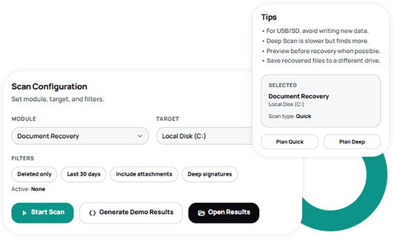 Our deleted document recovery tool is completely safe and secure to use on your systems.
